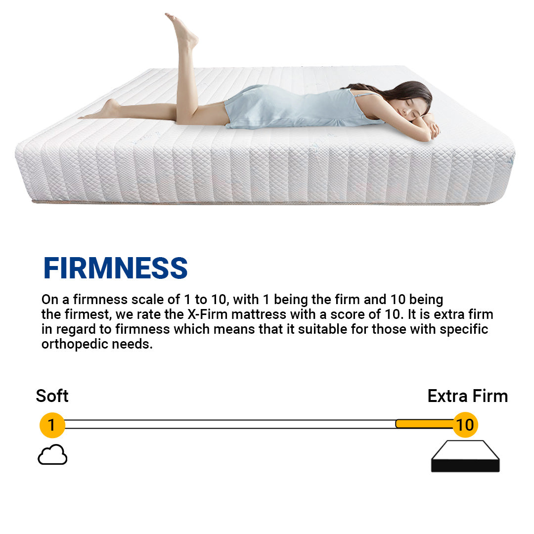 Firmness Level: 10/10: With a firmness rating of 10 out of 10, this mattress provides a strong, supportive surface for those who prefer a firmer sleep experience. Ideal for individuals seeking robust back support and spinal health.